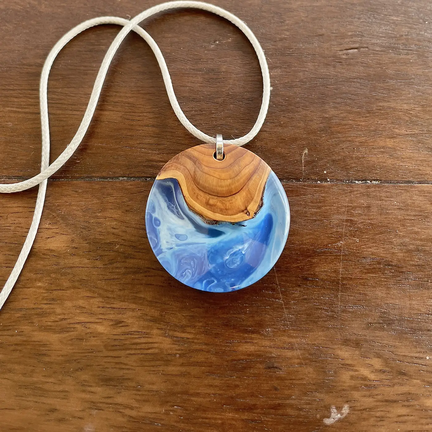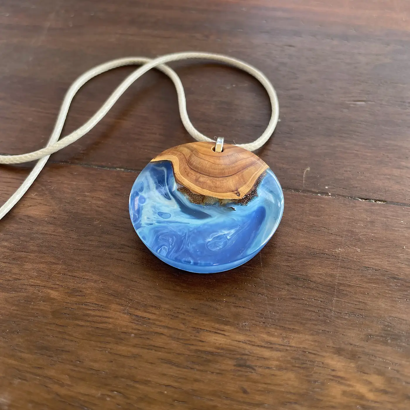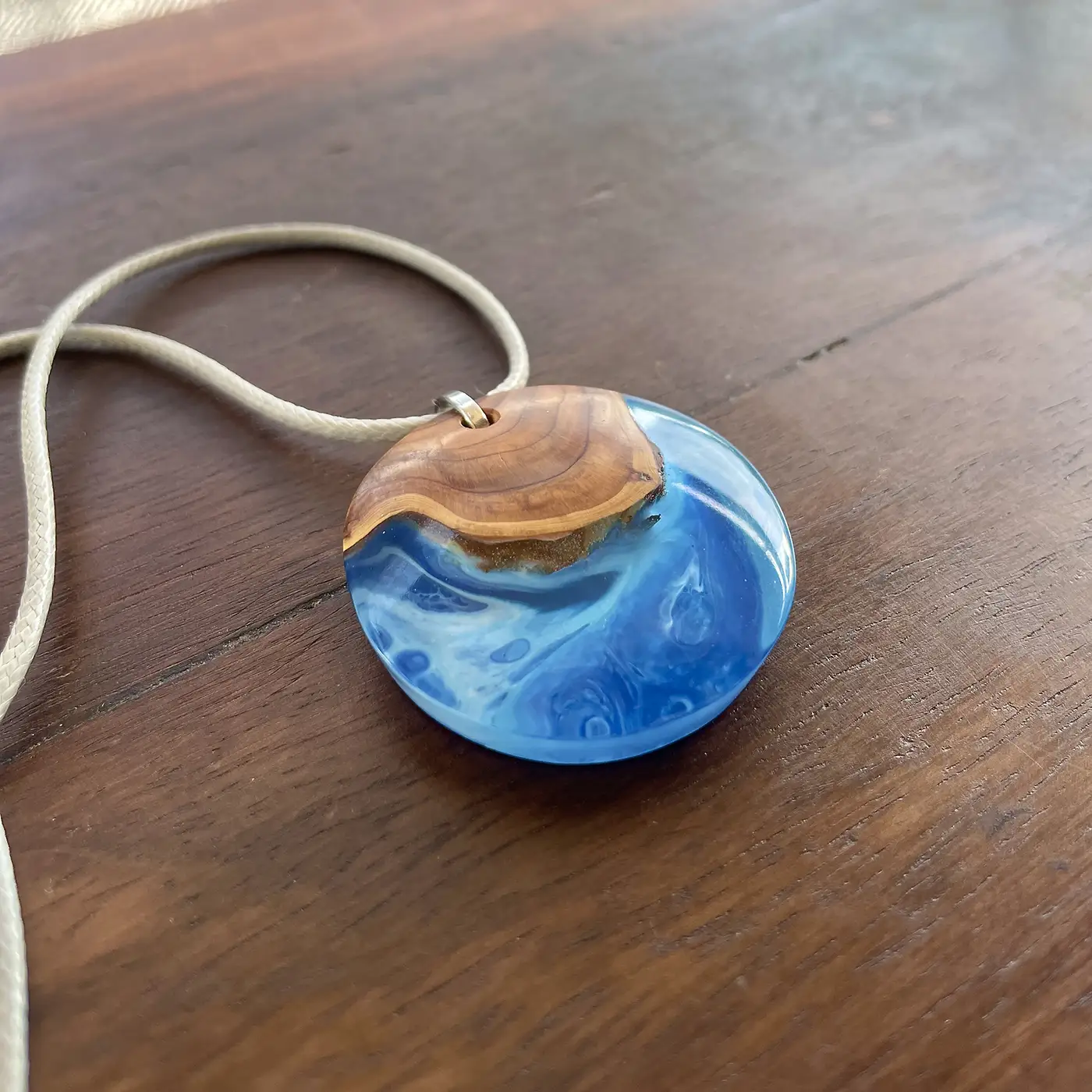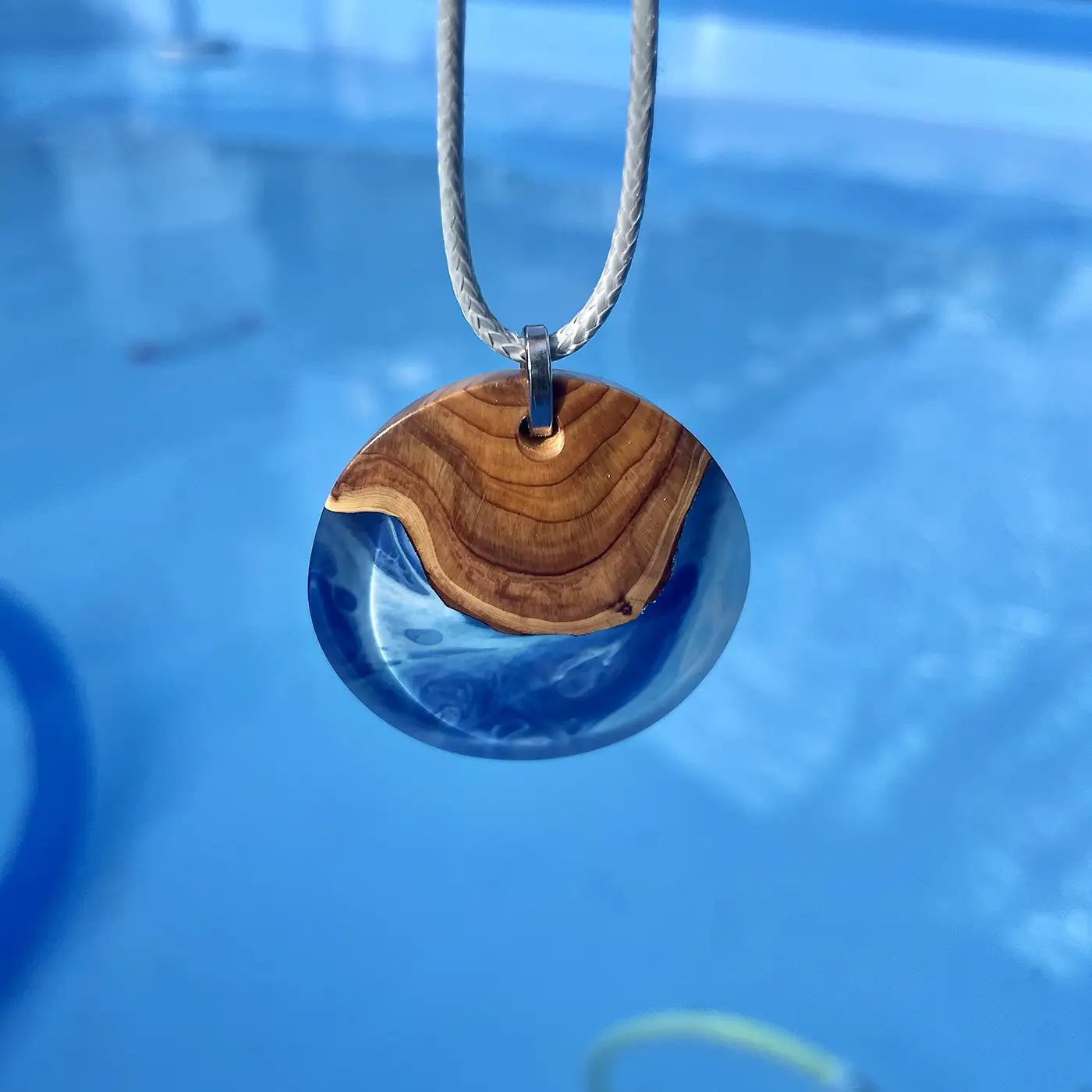 Kettenanhänger aus Eibenholz & Harz „Ocean Wave Disc“
